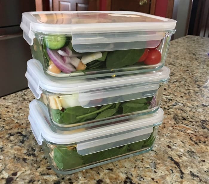 - I made the mason jar salads yesterday. I only need to make a few because I had a couple extra from last week. Also, I made my boyfriend Cobb salads using these glass meal prep containers. These containers fit into his Stanley lunch box perfectly.