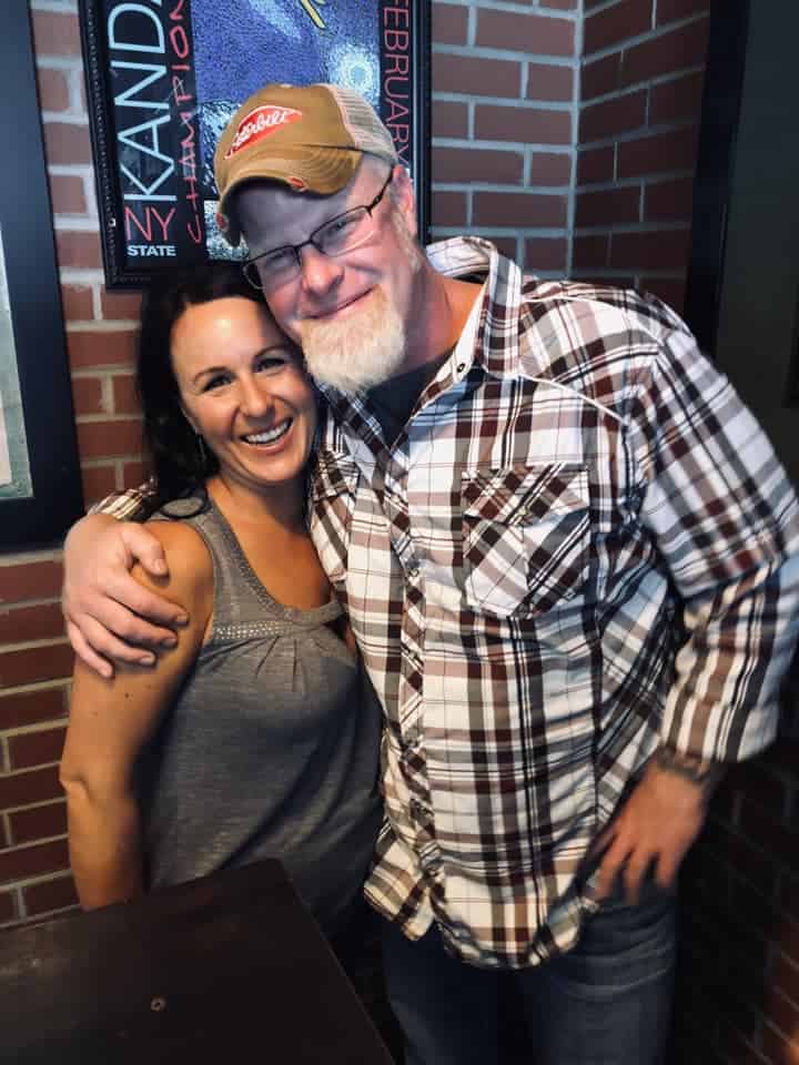 Here’s a pic of Mike and I. Oh I should also mention it was a heat wave that weekend too. Over 80 degrees and 100% humidity. It’s amazing my hair did anything that weekend!